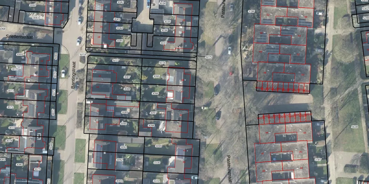 Het perceel waarop Pasteurstraat 47 staat heeft een oppervlakte van 281 m². Dit is een middelgroot perceel. De perceeloppervlakte wordt geregistreerd door het Kadaster. Gedetailleerde informatie over de maten van dit perceel kunt u vinden in het rapport Kadastrale kaart met maatvoering van Pasteurstraat 47.