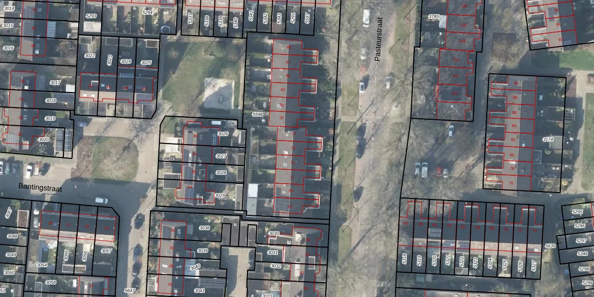Het perceel waarop Pasteurstraat 75 staat heeft een oppervlakte van 2112 m². Dit is een zeer groot perceel. De perceeloppervlakte wordt geregistreerd door het Kadaster. Gedetailleerde informatie over de maten van dit perceel kunt u vinden in het rapport Kadastrale kaart met maatvoering van Pasteurstraat 75.