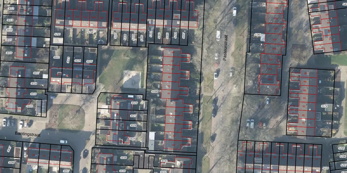 Het perceel waarop Pasteurstraat 81 staat heeft een oppervlakte van 2112 m². Dit is een zeer groot perceel. De perceeloppervlakte wordt geregistreerd door het Kadaster. Gedetailleerde informatie over de maten van dit perceel kunt u vinden in het rapport Kadastrale kaart met maatvoering van Pasteurstraat 81.