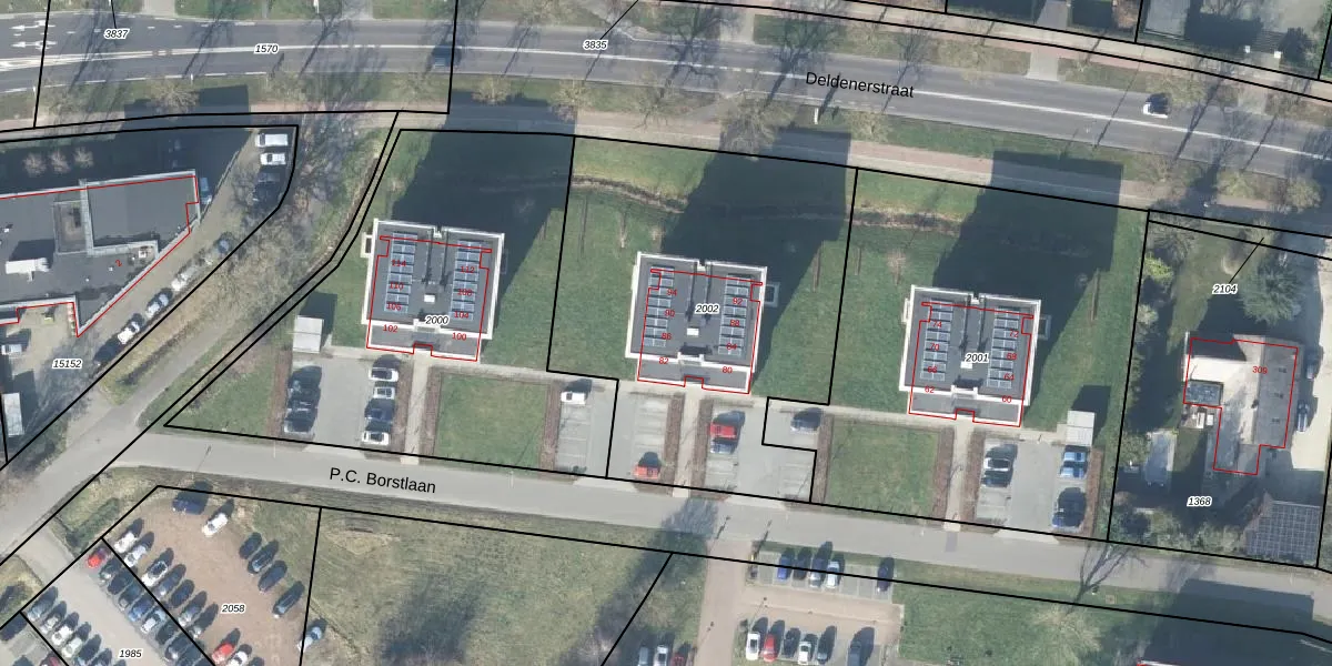 Het perceel waarop P.C. Borstlaan 86 staat heeft een oppervlakte van 1920 m². Dit is een zeer groot perceel. De perceeloppervlakte wordt geregistreerd door het Kadaster. Gedetailleerde informatie over de maten van dit perceel kunt u vinden in het rapport Kadastrale kaart met maatvoering van P.C. Borstlaan 86.