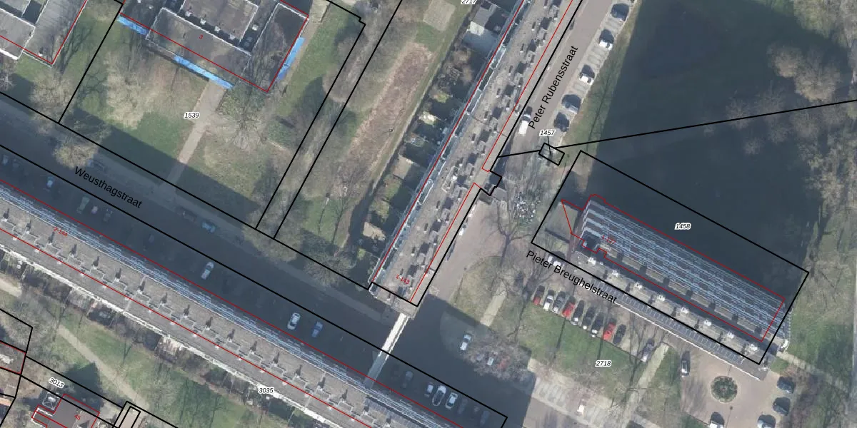 Het perceel waarop Peter Rubensstraat 61 staat heeft een oppervlakte van 5418 m². Dit is een zeer groot perceel. De perceeloppervlakte wordt geregistreerd door het Kadaster. Gedetailleerde informatie over de maten van dit perceel kunt u vinden in het rapport Kadastrale kaart met maatvoering van Peter Rubensstraat 61.
