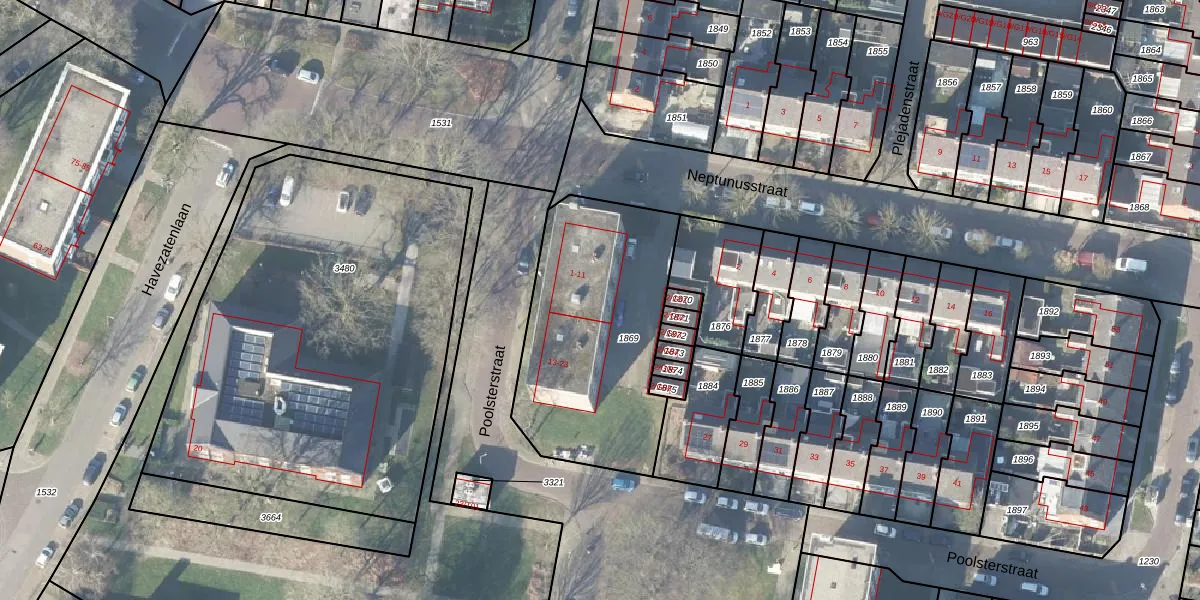 Het perceel waarop Poolsterstraat 11 staat heeft een oppervlakte van 970 m². Dit is een groot perceel. De perceeloppervlakte wordt geregistreerd door het Kadaster. Gedetailleerde informatie over de maten van dit perceel kunt u vinden in het rapport Kadastrale kaart met maatvoering van Poolsterstraat 11.