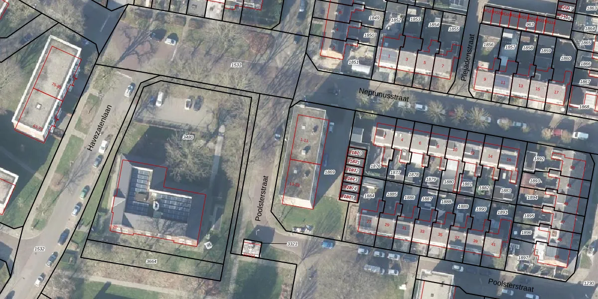 Het perceel waarop Poolsterstraat 3 staat heeft een oppervlakte van 970 m². Dit is een groot perceel. De perceeloppervlakte wordt geregistreerd door het Kadaster. Gedetailleerde informatie over de maten van dit perceel kunt u vinden in het rapport Kadastrale kaart met maatvoering van Poolsterstraat 3.