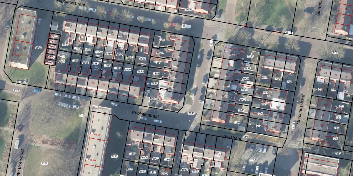 Gebruik de zoekbalk of klik op een perceel voor informatie over de adressen binnen dit perceel.