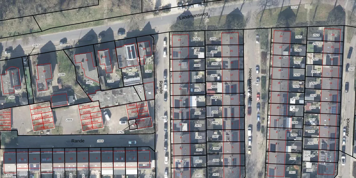 Gebruik de zoekbalk of klik op een perceel voor informatie over de adressen binnen dit perceel.