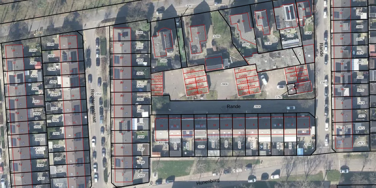 Rande 21-G01 is gelegen op kadastraal perceel HGL01P2806. Deze kadastrale aanduiding is uniek en wordt gebruikt door het Kadaster om eigendomsrechten en andere zakelijke rechten vast te leggen. Het perceel maakt onderdeel uit van de kadastrale gemeente Hengelo Overijssel.