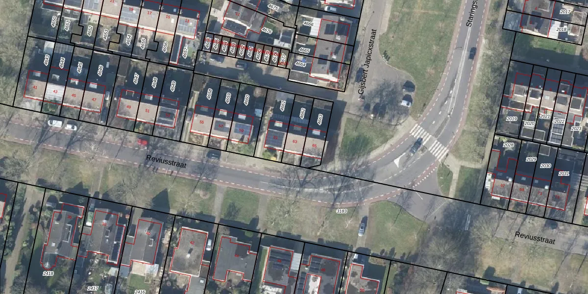 Het perceel waarop Reviusstraat 63 staat heeft een oppervlakte van 155 m². Dit is een middelgroot perceel. De perceeloppervlakte wordt geregistreerd door het Kadaster. Gedetailleerde informatie over de maten van dit perceel kunt u vinden in het rapport Kadastrale kaart met maatvoering van Reviusstraat 63.