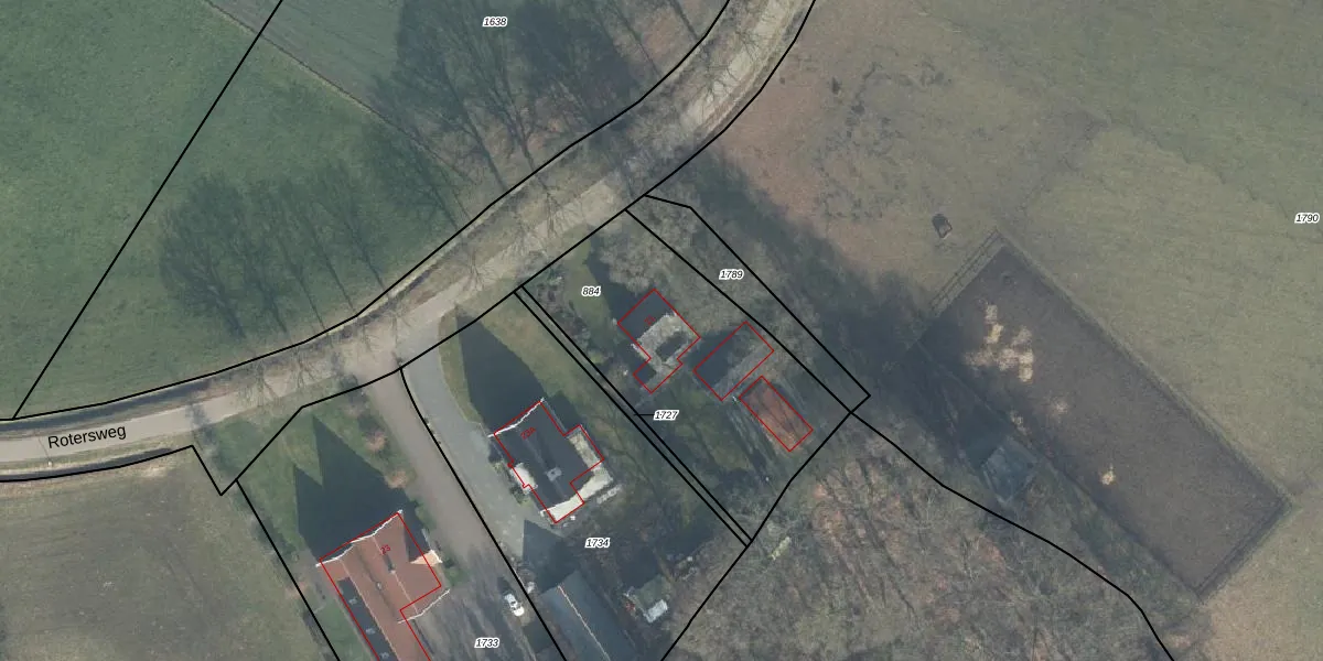 Het perceel waarop Rotersweg 21 staat heeft een oppervlakte van 1040 m². Dit is een zeer groot perceel. De perceeloppervlakte wordt geregistreerd door het Kadaster. Gedetailleerde informatie over de maten van dit perceel kunt u vinden in het rapport Kadastrale kaart met maatvoering van Rotersweg 21.