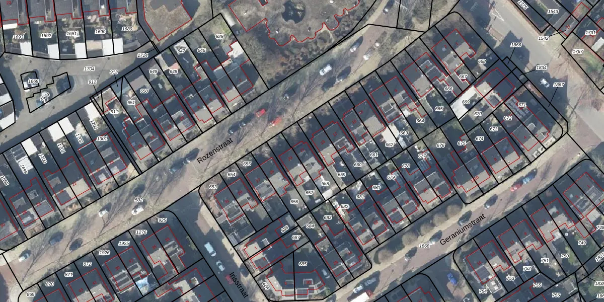 Het perceel waarop Rozenstraat 21 staat heeft een oppervlakte van 167 m². Dit is een middelgroot perceel. De perceeloppervlakte wordt geregistreerd door het Kadaster. Gedetailleerde informatie over de maten van dit perceel kunt u vinden in het rapport Kadastrale kaart met maatvoering van Rozenstraat 21.