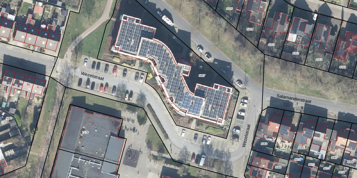Het perceel waarop Salamanderstraat 45 staat heeft een oppervlakte van 2857 m². Dit is een zeer groot perceel. De perceeloppervlakte wordt geregistreerd door het Kadaster. Gedetailleerde informatie over de maten van dit perceel kunt u vinden in het rapport Kadastrale kaart met maatvoering van Salamanderstraat 45.