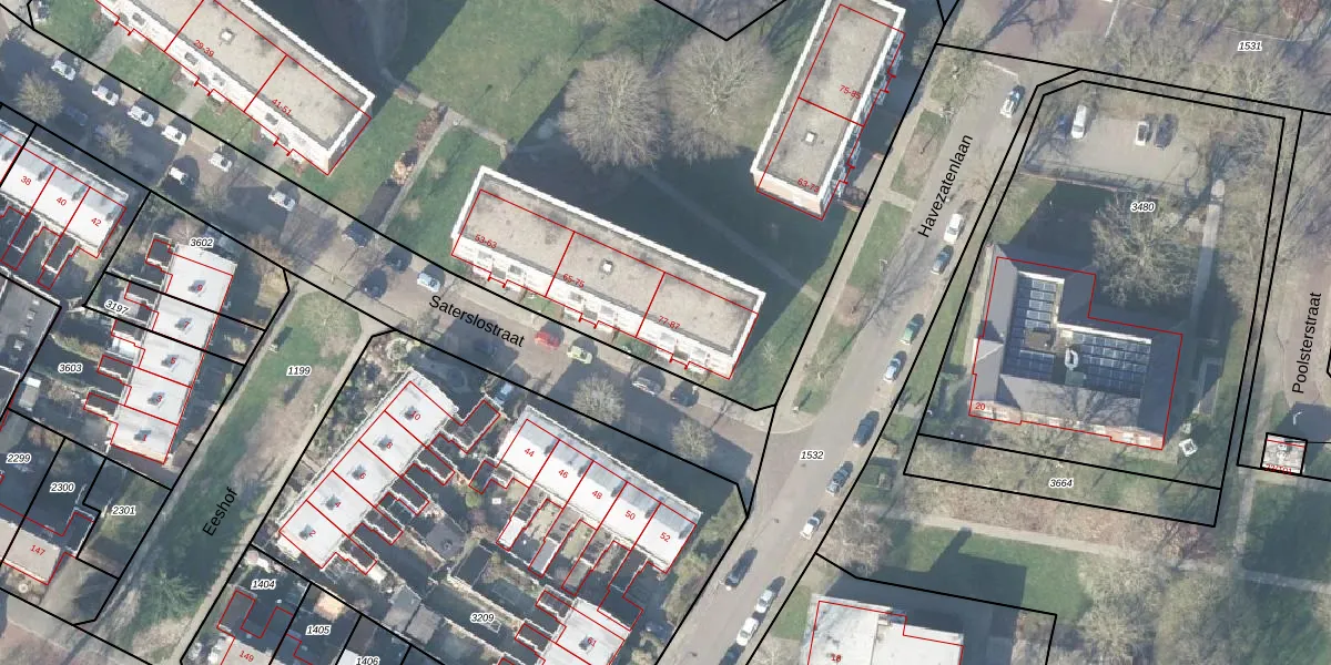 Het perceel waarop Saterslostraat 77 staat heeft een oppervlakte van 7080 m². Dit is een zeer groot perceel. De perceeloppervlakte wordt geregistreerd door het Kadaster. Gedetailleerde informatie over de maten van dit perceel kunt u vinden in het rapport Kadastrale kaart met maatvoering van Saterslostraat 77.