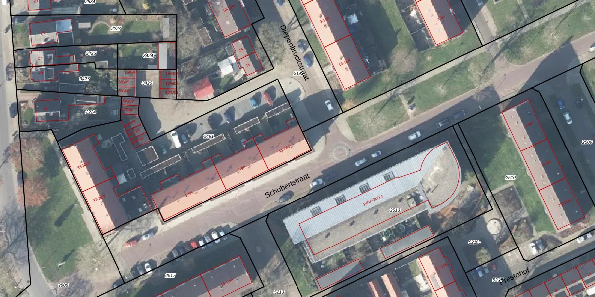 Schubertstraat 13 is gelegen op kadastraal perceel HGL01O2491. Deze kadastrale aanduiding is uniek en wordt gebruikt door het Kadaster om eigendomsrechten en andere zakelijke rechten vast te leggen. Het perceel maakt onderdeel uit van de kadastrale gemeente Hengelo Overijssel.