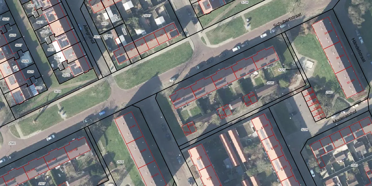 Het perceel waarop Schubertstraat 56 staat heeft een oppervlakte van 2350 m². Dit is een zeer groot perceel. De perceeloppervlakte wordt geregistreerd door het Kadaster. Gedetailleerde informatie over de maten van dit perceel kunt u vinden in het rapport Kadastrale kaart met maatvoering van Schubertstraat 56.