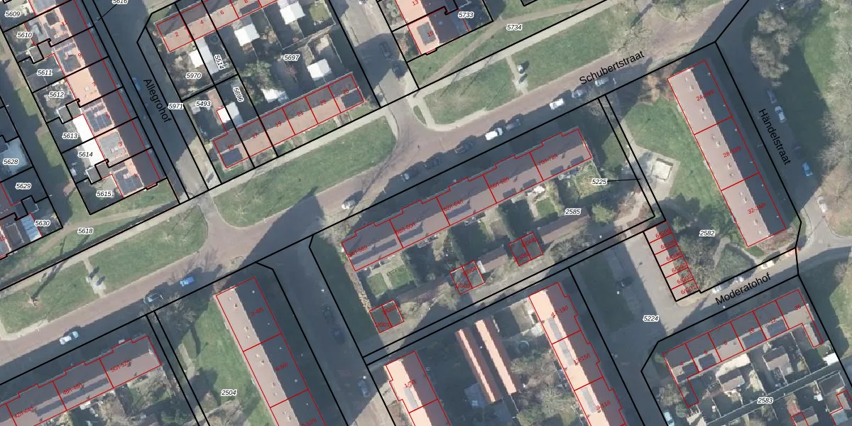 Het perceel waarop Schubertstraat 60 staat heeft een oppervlakte van 2350 m². Dit is een zeer groot perceel. De perceeloppervlakte wordt geregistreerd door het Kadaster. Gedetailleerde informatie over de maten van dit perceel kunt u vinden in het rapport Kadastrale kaart met maatvoering van Schubertstraat 60.