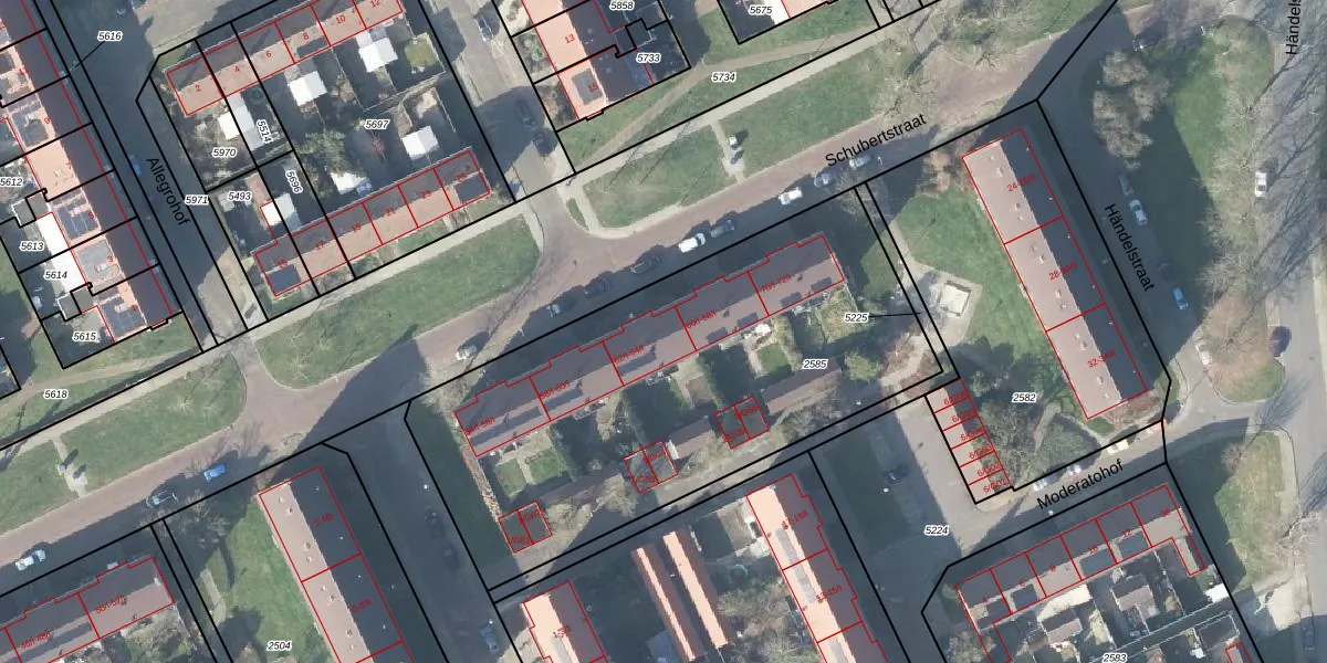 Het perceel waarop Schubertstraat 64 staat heeft een oppervlakte van 2350 m². Dit is een zeer groot perceel. De perceeloppervlakte wordt geregistreerd door het Kadaster. Gedetailleerde informatie over de maten van dit perceel kunt u vinden in het rapport Kadastrale kaart met maatvoering van Schubertstraat 64.
