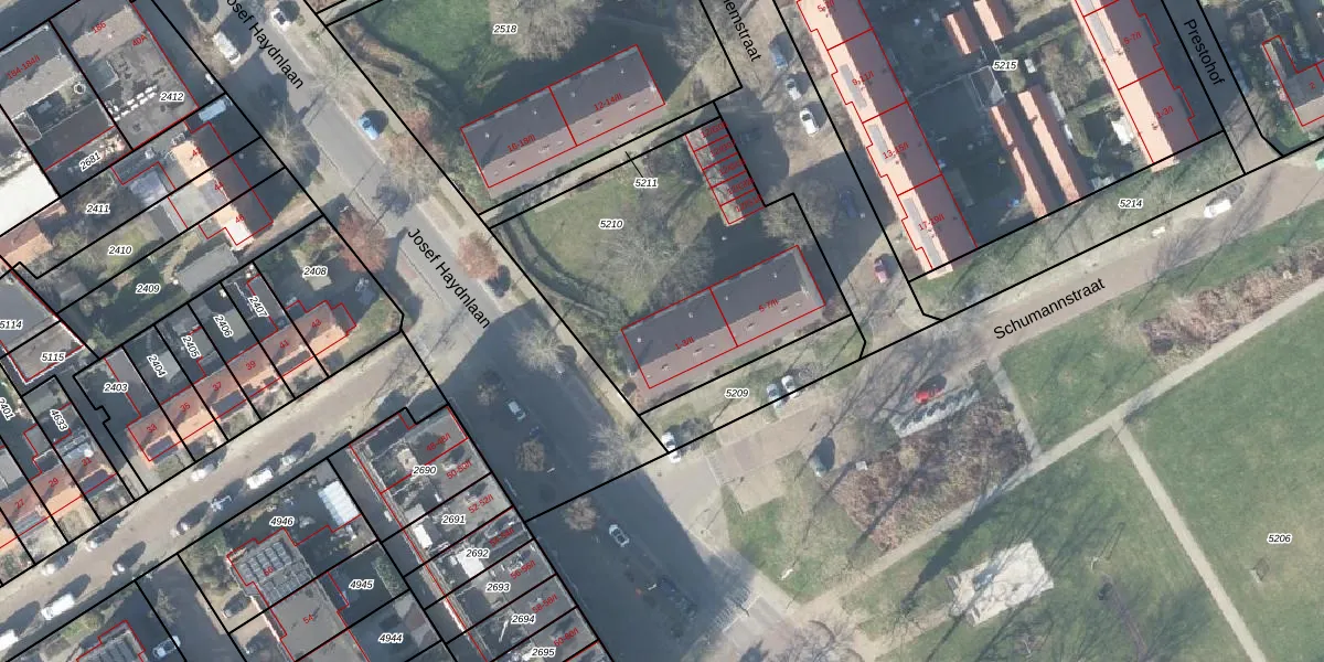 Het perceel waarop Schumannstraat 1-II staat heeft een oppervlakte van 1336 m². Dit is een zeer groot perceel. De perceeloppervlakte wordt geregistreerd door het Kadaster. Gedetailleerde informatie over de maten van dit perceel kunt u vinden in het rapport Kadastrale kaart met maatvoering van Schumannstraat 1-II.