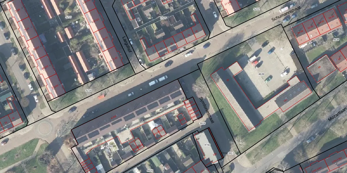 Het perceel waarop Schumannstraat 20 staat heeft een oppervlakte van 2089 m². Dit is een zeer groot perceel. De perceeloppervlakte wordt geregistreerd door het Kadaster. Gedetailleerde informatie over de maten van dit perceel kunt u vinden in het rapport Kadastrale kaart met maatvoering van Schumannstraat 20.