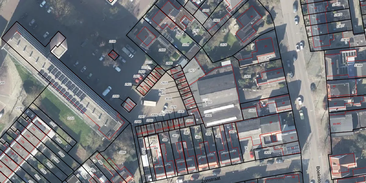 Gebruik de zoekbalk of klik op een perceel voor informatie over de adressen binnen dit perceel.