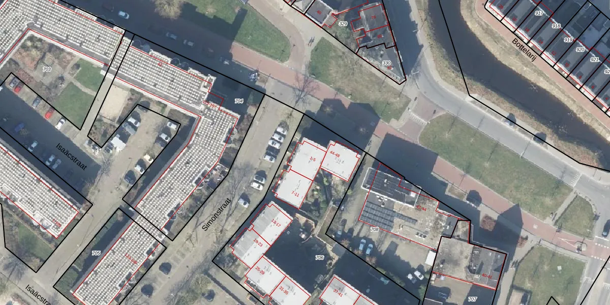 Het perceel waarop Simonstraat 3 staat heeft een oppervlakte van 2978 m². Dit is een zeer groot perceel. De perceeloppervlakte wordt geregistreerd door het Kadaster. Gedetailleerde informatie over de maten van dit perceel kunt u vinden in het rapport Kadastrale kaart met maatvoering van Simonstraat 3.