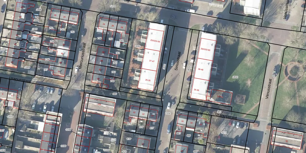 Het perceel waarop Siriusstraat 25-G02 staat heeft een oppervlakte van 1095 m². Dit is een zeer groot perceel. De perceeloppervlakte wordt geregistreerd door het Kadaster. Gedetailleerde informatie over de maten van dit perceel kunt u vinden in het rapport Kadastrale kaart met maatvoering van Siriusstraat 25-G02.