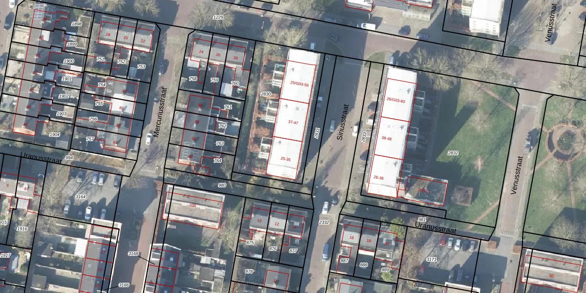Het perceel waarop Siriusstraat 31 staat heeft een oppervlakte van 1095 m². Dit is een zeer groot perceel. De perceeloppervlakte wordt geregistreerd door het Kadaster. Gedetailleerde informatie over de maten van dit perceel kunt u vinden in het rapport Kadastrale kaart met maatvoering van Siriusstraat 31.