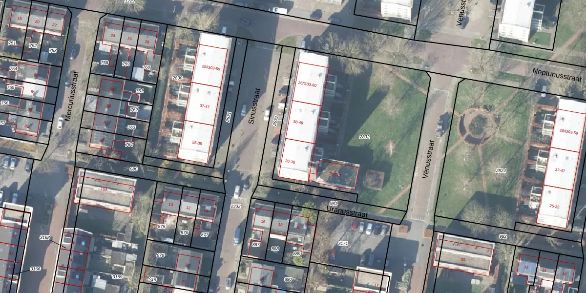Siriusstraat 36 is gelegen op kadastraal perceel HGL01P2832. Deze kadastrale aanduiding is uniek en wordt gebruikt door het Kadaster om eigendomsrechten en andere zakelijke rechten vast te leggen. Het perceel maakt onderdeel uit van de kadastrale gemeente Hengelo Overijssel.