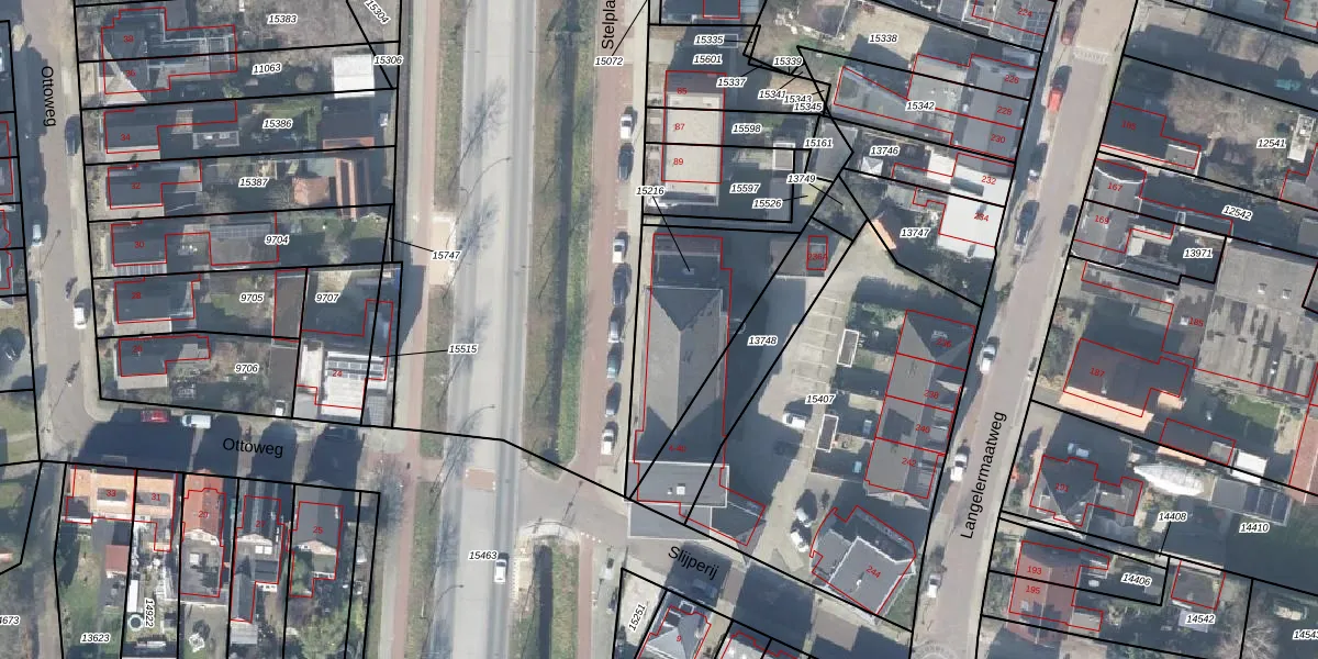 Het perceel waarop Slijperij 12 staat heeft een oppervlakte van 520 m². Dit is een groot perceel. De perceeloppervlakte wordt geregistreerd door het Kadaster. Gedetailleerde informatie over de maten van dit perceel kunt u vinden in het rapport Kadastrale kaart met maatvoering van Slijperij 12.