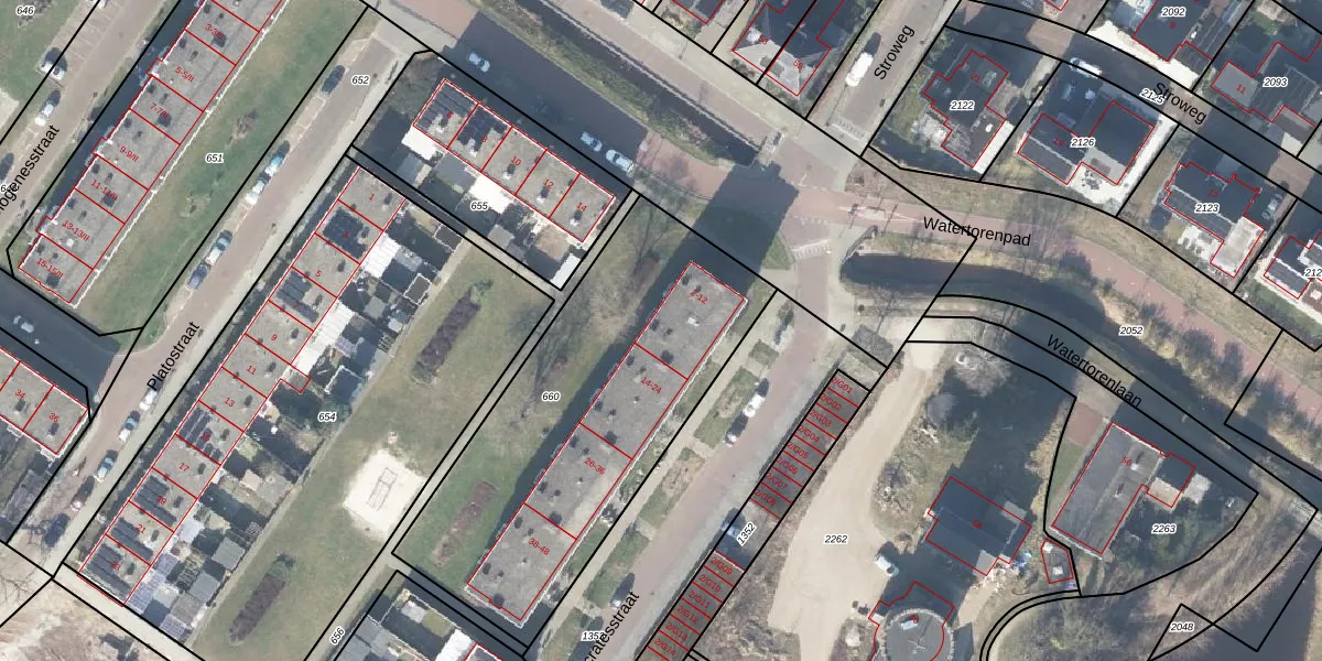 Het perceel waarop Socratesstraat 12 staat heeft een oppervlakte van 1652 m². Dit is een zeer groot perceel. De perceeloppervlakte wordt geregistreerd door het Kadaster. Gedetailleerde informatie over de maten van dit perceel kunt u vinden in het rapport Kadastrale kaart met maatvoering van Socratesstraat 12.