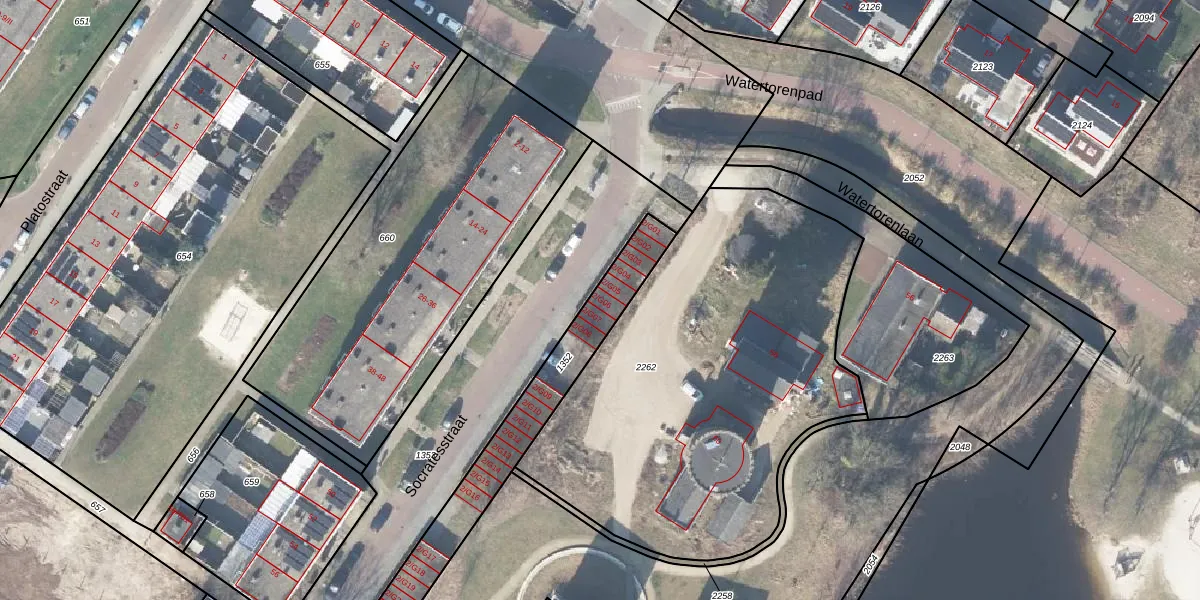 Het perceel waarop Socratesstraat 2-G06 staat heeft een oppervlakte van 530 m². Dit is een groot perceel. De perceeloppervlakte wordt geregistreerd door het Kadaster. Gedetailleerde informatie over de maten van dit perceel kunt u vinden in het rapport Kadastrale kaart met maatvoering van Socratesstraat 2-G06.