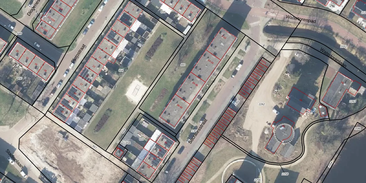 Het perceel waarop Socratesstraat 36 staat heeft een oppervlakte van 1652 m². Dit is een zeer groot perceel. De perceeloppervlakte wordt geregistreerd door het Kadaster. Gedetailleerde informatie over de maten van dit perceel kunt u vinden in het rapport Kadastrale kaart met maatvoering van Socratesstraat 36.