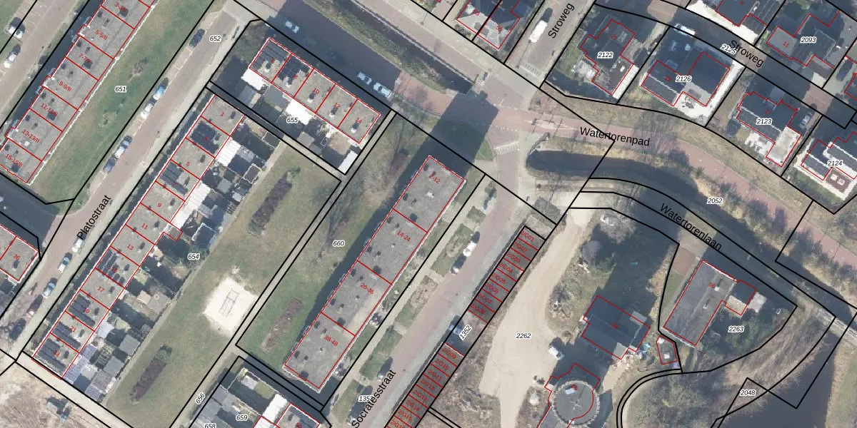 Het perceel waarop Socratesstraat 4 staat heeft een oppervlakte van 1652 m². Dit is een zeer groot perceel. De perceeloppervlakte wordt geregistreerd door het Kadaster. Gedetailleerde informatie over de maten van dit perceel kunt u vinden in het rapport Kadastrale kaart met maatvoering van Socratesstraat 4.