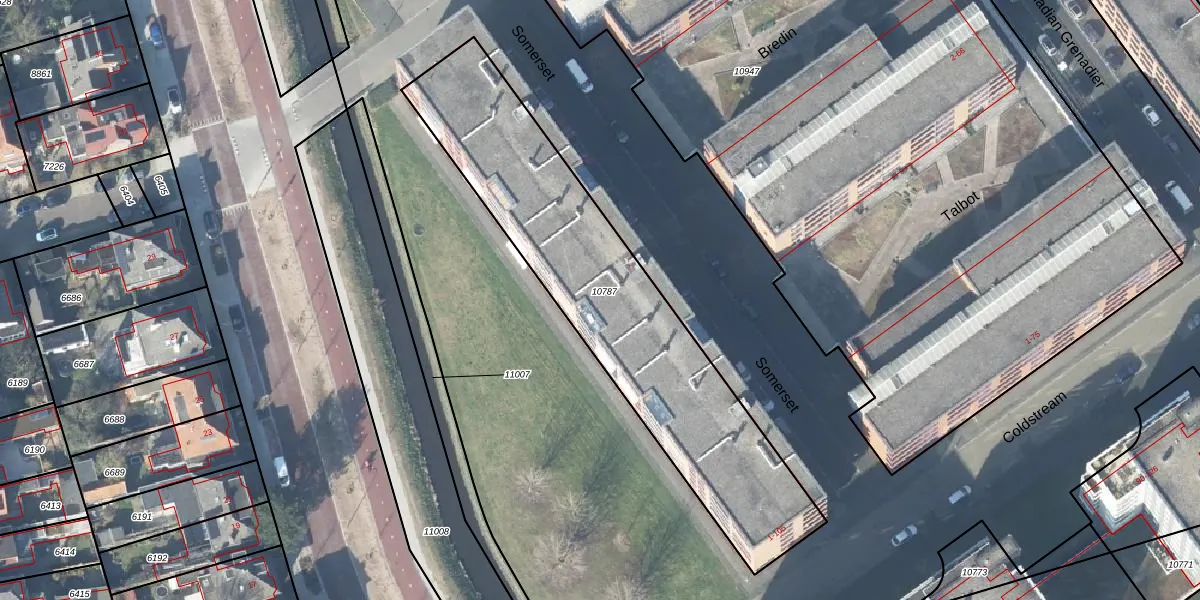 Het perceel waarop Somerset 59 staat heeft een oppervlakte van 1500 m². Dit is een zeer groot perceel. De perceeloppervlakte wordt geregistreerd door het Kadaster. Gedetailleerde informatie over de maten van dit perceel kunt u vinden in het rapport Kadastrale kaart met maatvoering van Somerset 59.