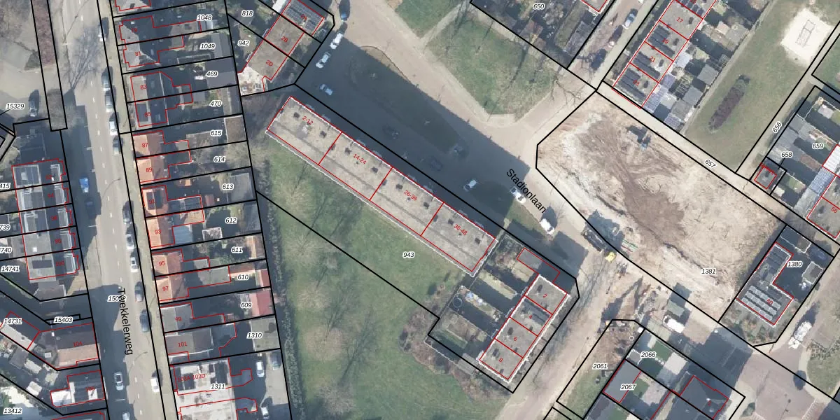 Stadionlaan 32 is gelegen op kadastraal perceel HGL01N943. Deze kadastrale aanduiding is uniek en wordt gebruikt door het Kadaster om eigendomsrechten en andere zakelijke rechten vast te leggen. Het perceel maakt onderdeel uit van de kadastrale gemeente Hengelo Overijssel.