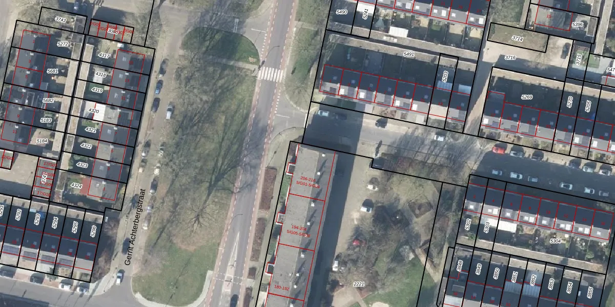 Het perceel waarop Staringstraat 214 staat heeft een oppervlakte van 4545 m². Dit is een zeer groot perceel. De perceeloppervlakte wordt geregistreerd door het Kadaster. Gedetailleerde informatie over de maten van dit perceel kunt u vinden in het rapport Kadastrale kaart met maatvoering van Staringstraat 214.