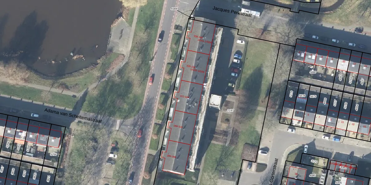 Het perceel waarop Staringstraat 320 staat heeft een oppervlakte van 4557 m². Dit is een zeer groot perceel. De perceeloppervlakte wordt geregistreerd door het Kadaster. Gedetailleerde informatie over de maten van dit perceel kunt u vinden in het rapport Kadastrale kaart met maatvoering van Staringstraat 320.
