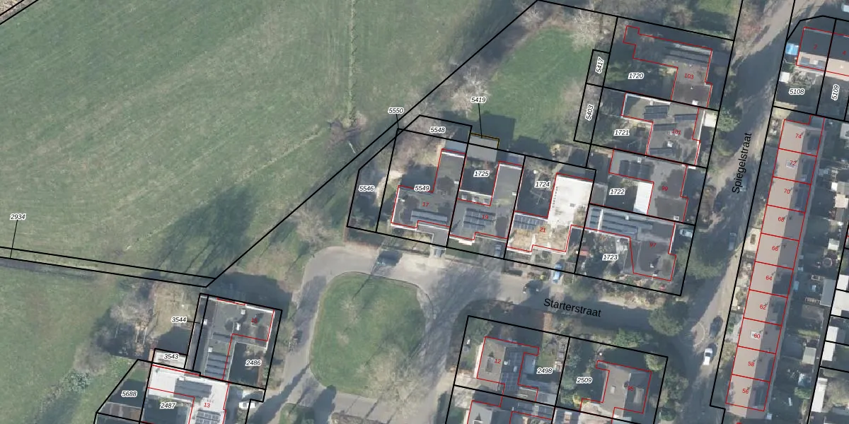 Het perceel waarop Starterstraat 17 staat heeft een oppervlakte van 423 m². Dit is een groot perceel. De perceeloppervlakte wordt geregistreerd door het Kadaster. Gedetailleerde informatie over de maten van dit perceel kunt u vinden in het rapport Kadastrale kaart met maatvoering van Starterstraat 17.
