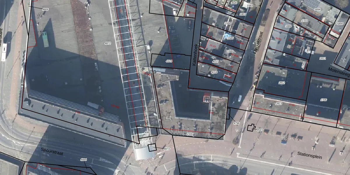 Het perceel waarop Stationsplein 33 staat heeft een oppervlakte van 1280 m². Dit is een zeer groot perceel. De perceeloppervlakte wordt geregistreerd door het Kadaster. Gedetailleerde informatie over de maten van dit perceel kunt u vinden in het rapport Kadastrale kaart met maatvoering van Stationsplein 33.
