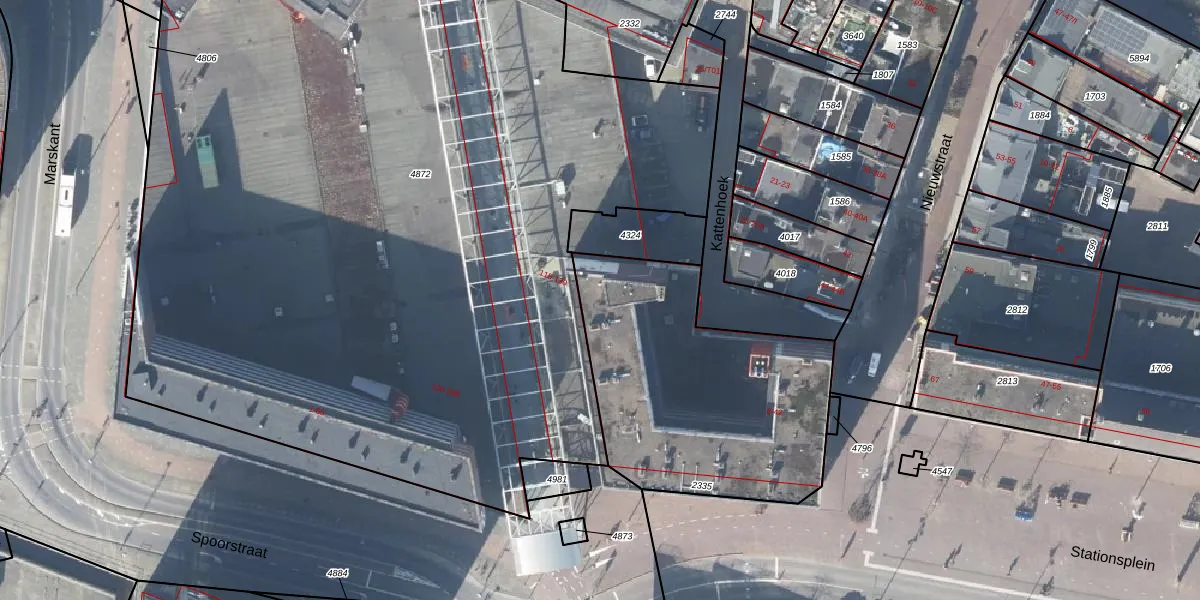 Het perceel waarop Stationsplein 8 staat heeft een oppervlakte van 1280 m². Dit is een zeer groot perceel. De perceeloppervlakte wordt geregistreerd door het Kadaster. Gedetailleerde informatie over de maten van dit perceel kunt u vinden in het rapport Kadastrale kaart met maatvoering van Stationsplein 8.