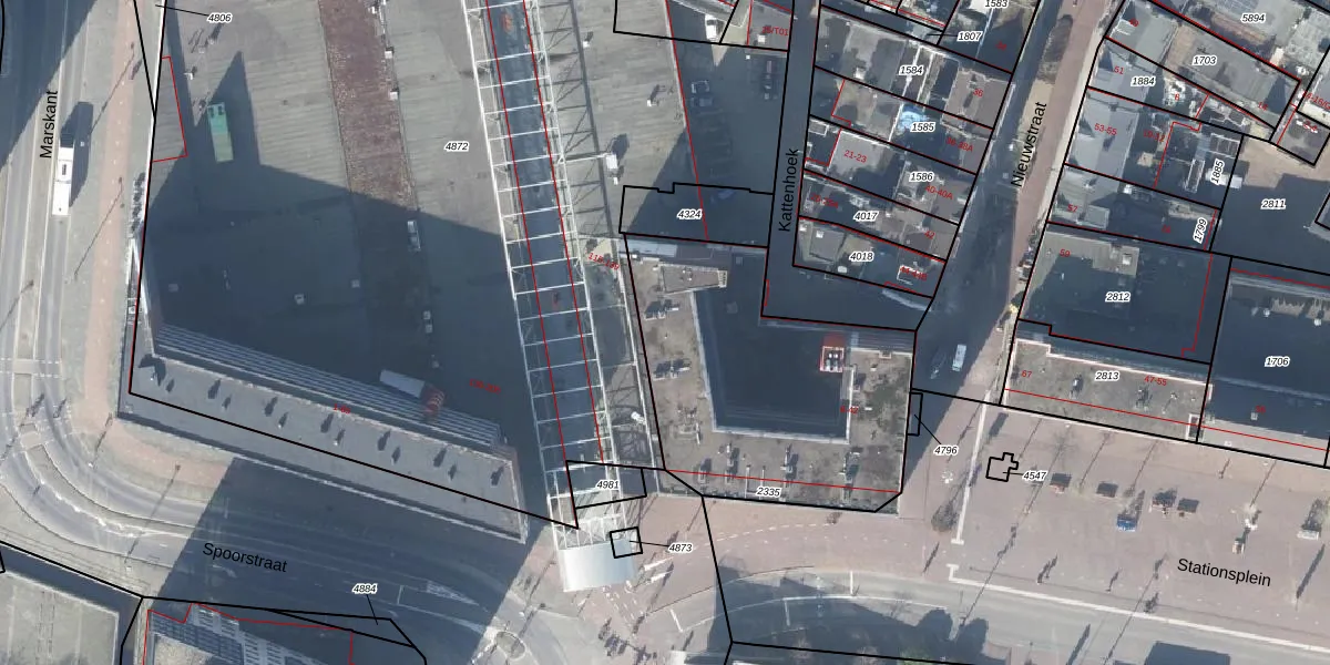 Het perceel waarop Stationsplein 9 staat heeft een oppervlakte van 1280 m². Dit is een zeer groot perceel. De perceeloppervlakte wordt geregistreerd door het Kadaster. Gedetailleerde informatie over de maten van dit perceel kunt u vinden in het rapport Kadastrale kaart met maatvoering van Stationsplein 9.