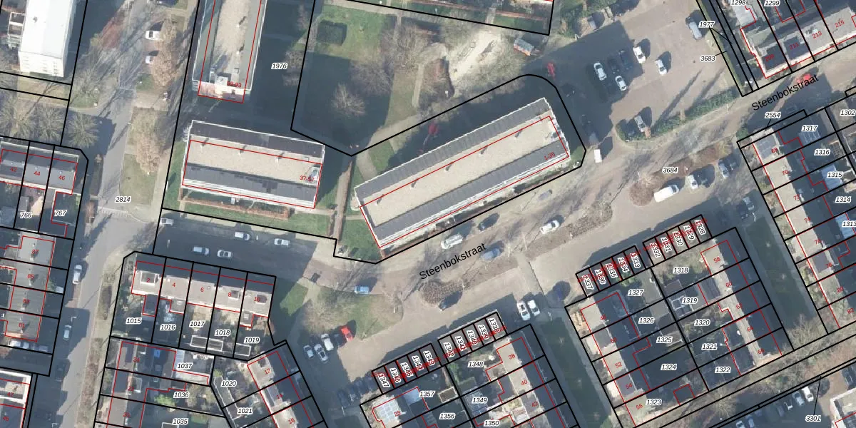 Het perceel waarop Steenbokstraat 25 staat heeft een oppervlakte van 4980 m². Dit is een zeer groot perceel. De perceeloppervlakte wordt geregistreerd door het Kadaster. Gedetailleerde informatie over de maten van dit perceel kunt u vinden in het rapport Kadastrale kaart met maatvoering van Steenbokstraat 25.