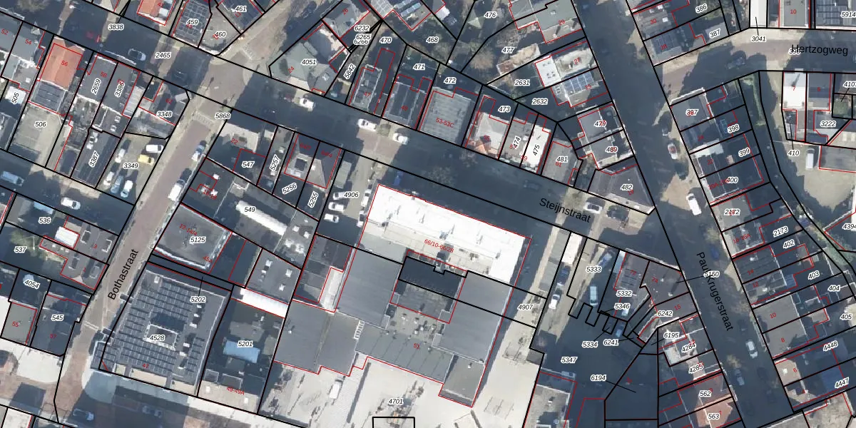 Het perceel waarop Steijnstraat 66-6 staat heeft een oppervlakte van 1047 m². Dit is een zeer groot perceel. De perceeloppervlakte wordt geregistreerd door het Kadaster. Gedetailleerde informatie over de maten van dit perceel kunt u vinden in het rapport Kadastrale kaart met maatvoering van Steijnstraat 66-6.