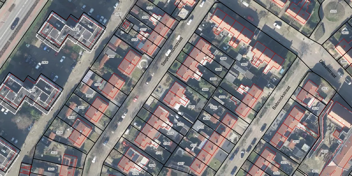 Stephensonstraat 9 is gelegen op kadastraal perceel HGL01I3825. Deze kadastrale aanduiding is uniek en wordt gebruikt door het Kadaster om eigendomsrechten en andere zakelijke rechten vast te leggen. Het perceel maakt onderdeel uit van de kadastrale gemeente Hengelo Overijssel.