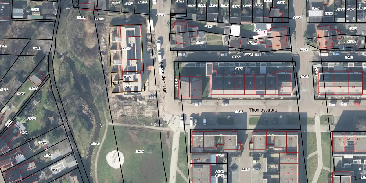 Thomasstraat 1 is gelegen op kadastraal perceel HGL01D15631. Deze kadastrale aanduiding is uniek en wordt gebruikt door het Kadaster om eigendomsrechten en andere zakelijke rechten vast te leggen. Het perceel maakt onderdeel uit van de kadastrale gemeente Hengelo Overijssel.