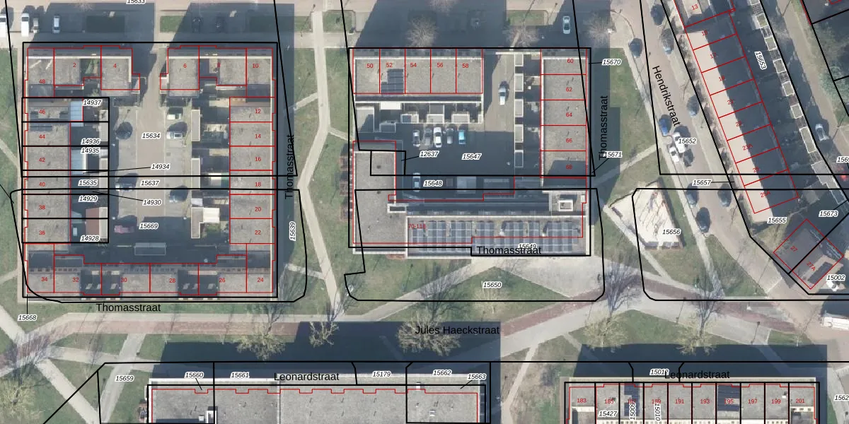 Thomasstraat 116 is gelegen op kadastraal perceel HGL01D15649. Deze kadastrale aanduiding is uniek en wordt gebruikt door het Kadaster om eigendomsrechten en andere zakelijke rechten vast te leggen. Het perceel maakt onderdeel uit van de kadastrale gemeente Hengelo Overijssel.