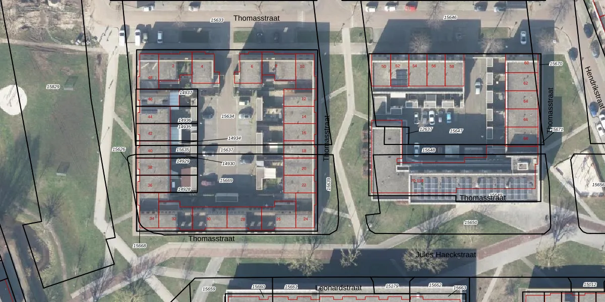 Thomasstraat 18 is gelegen op kadastraal perceel HGL01D15637. Deze kadastrale aanduiding is uniek en wordt gebruikt door het Kadaster om eigendomsrechten en andere zakelijke rechten vast te leggen. Het perceel maakt onderdeel uit van de kadastrale gemeente Hengelo Overijssel.