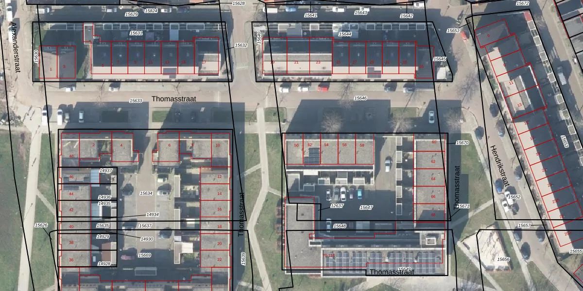 Thomasstraat 50 is gelegen op kadastraal perceel HGL01D15647. Deze kadastrale aanduiding is uniek en wordt gebruikt door het Kadaster om eigendomsrechten en andere zakelijke rechten vast te leggen. Het perceel maakt onderdeel uit van de kadastrale gemeente Hengelo Overijssel.