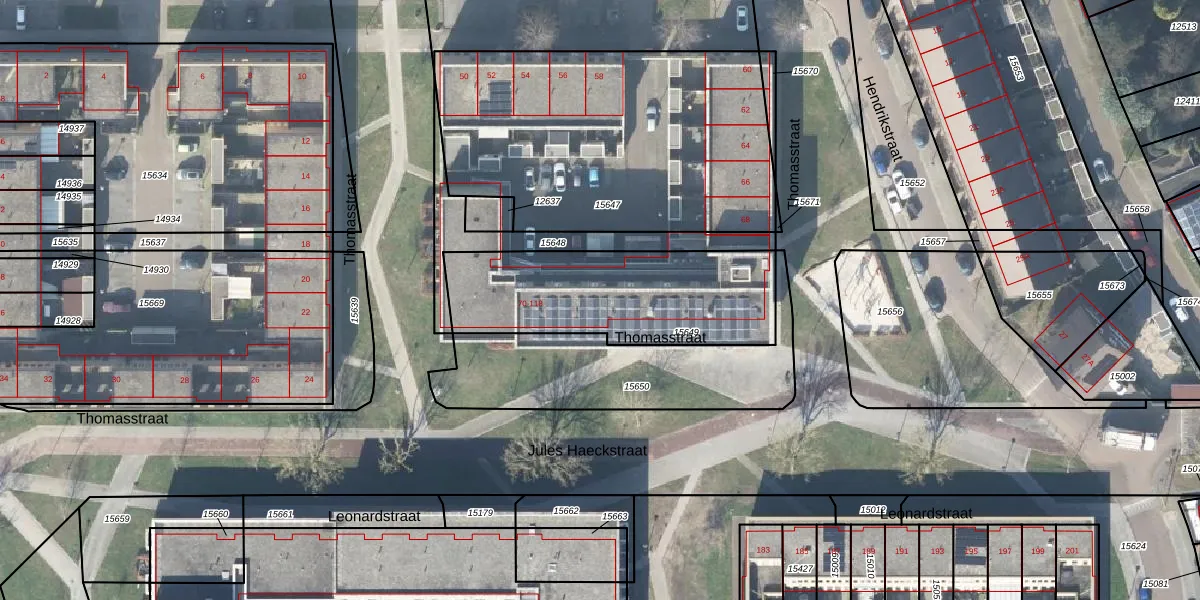 Het perceel waarop Thomasstraat 92 staat heeft een oppervlakte van 800 m². Dit is een groot perceel. De perceeloppervlakte wordt geregistreerd door het Kadaster. Gedetailleerde informatie over de maten van dit perceel kunt u vinden in het rapport Kadastrale kaart met maatvoering van Thomasstraat 92.