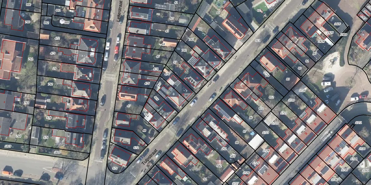 Gebruik de zoekbalk of klik op een perceel voor informatie over de adressen binnen dit perceel.