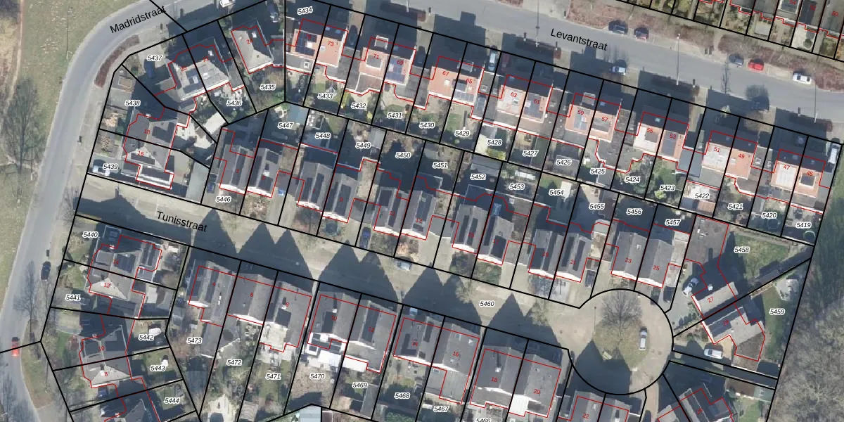 Het perceel waarop Tunisstraat 13 staat heeft een oppervlakte van 275 m². Dit is een middelgroot perceel. De perceeloppervlakte wordt geregistreerd door het Kadaster. Gedetailleerde informatie over de maten van dit perceel kunt u vinden in het rapport Kadastrale kaart met maatvoering van Tunisstraat 13.