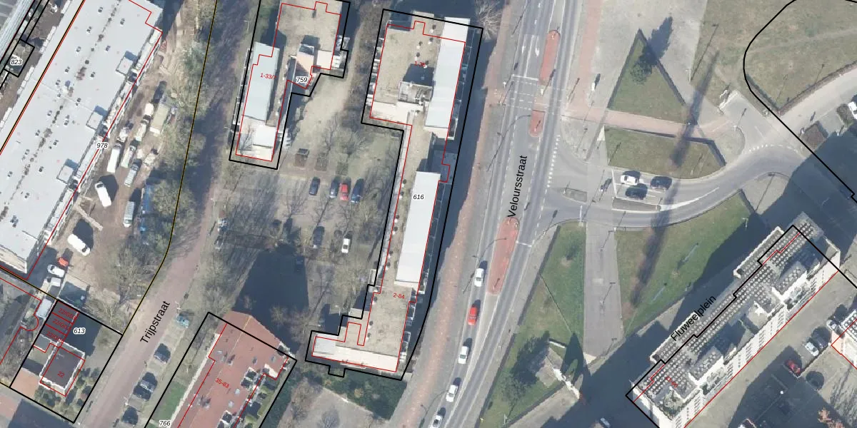 Het perceel waarop Veloursstraat 4 staat heeft een oppervlakte van 1528 m². Dit is een zeer groot perceel. De perceeloppervlakte wordt geregistreerd door het Kadaster. Gedetailleerde informatie over de maten van dit perceel kunt u vinden in het rapport Kadastrale kaart met maatvoering van Veloursstraat 4.